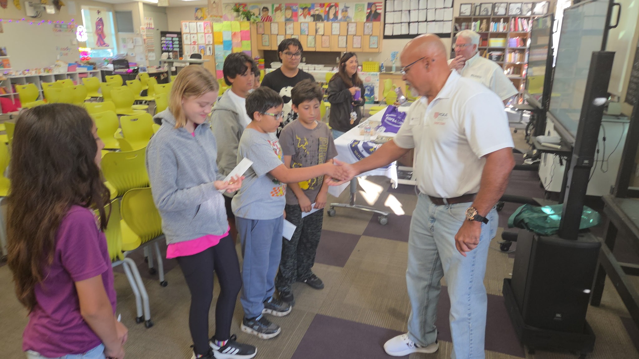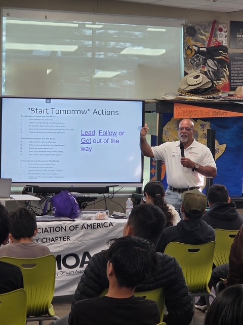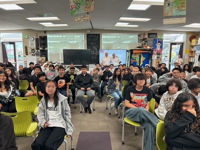 On October 10th, Colonel Ray Watts and Mr. Mike Hennessy, spoke to the students of this Eas SanJose school. They talked about citizenship, service, and leadership. Through an engaging presentation connecting ancient Roman history to modern civic duty, students discovered that they don’t need a uniform—or even to wait until they’re adults—to make a real difference in their communities. The presentation explored how small acts of service create ripple effects that extend far beyond the initial action. Whether it’s helping a classmate with homework, standing up against bullying, volunteering in the neighborhood, or simply doing chores at home without being asked, students learned that service builds character, strengthens communities, and develops the leadership skills they’ll need for future success. The core message was clear: you don’t need to do something huge to make a real impact. At the conclusion of the presentation,every student