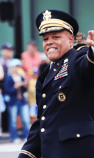 The 107th annual San Jose Veterans Day Parade was one not to be missed. Dozens of floats, marching bands, military vehicles and Veterans took part. Santa Clara and Market Streets were lined with families thrilled to share in the recognition of the valor of our military warriors. First created to mark the anniversary of the end of the shooting in WW1, “Armistice Day” was renamed in 1954 to honor ALL veterans. It is known as the largest Veterans Day Parade in Northern California, honoring all who have served or are currently serving in the United States Armed Forces. The day began with a Pre-Parade Ceremony at 11:00 a.m. at Plaza de Cesar Chavez. MOAA played a leading role by organizing and managing the event. Led by Colonel Ray Watts (pictured) and his team of volunteers, the parade ran smoothly to everyone’s delight.