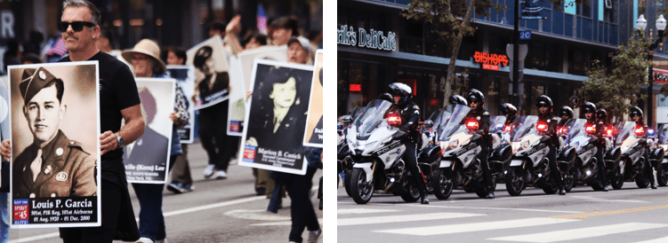 San Jose’s 106th Annual Veterans Day Parade was almost not going to happen. Funding and organizational issues threatened the 2024 edition. Kudos to svcMOAA President Lt Col Ray Watts USA (ret) for picking up the ball. New sponsors, the city and personal & business donations committed to fund the parade. Light rain didn’t stop the event which runs from SAP Arena thru town to the Plaza de Cesar Chavez..
