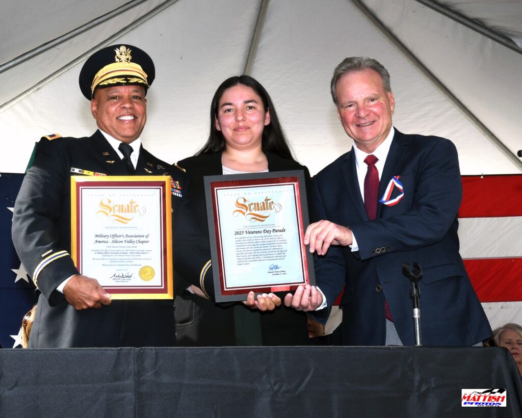It’s highly recommended that you watch the Pre-parade ceremony. It ran for about 48 minutes. You’ll see our own Col Ray Watts lead the Pledge of Allegiance, then hear the invocation by SVC MOAA member and priest, Father Michael Hendrickson. Be sure to see Grand Marshall and SVC MOAA member, A.J. Pasciuti, give his speech honoring Veterans. Other dignitaries included: State Senator Dave Cortese and County Supervisor/former Navy Commander, Otto Lee.